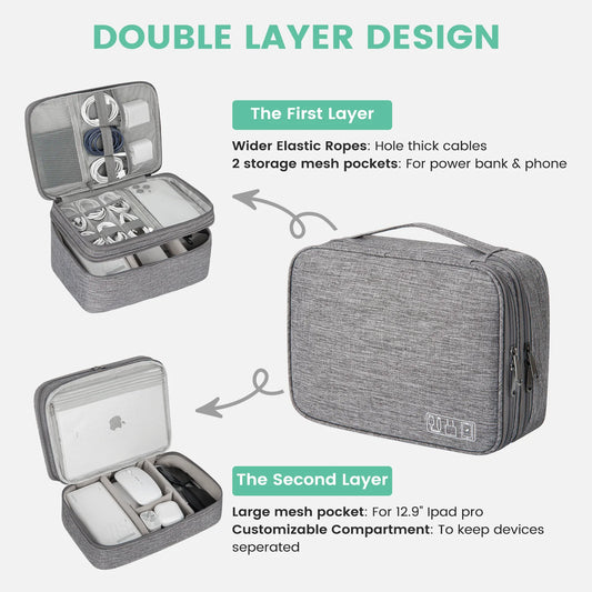 Electronics Organizer Travel Case, Water Resistant Cable Organizer Bag for Travel Essentials